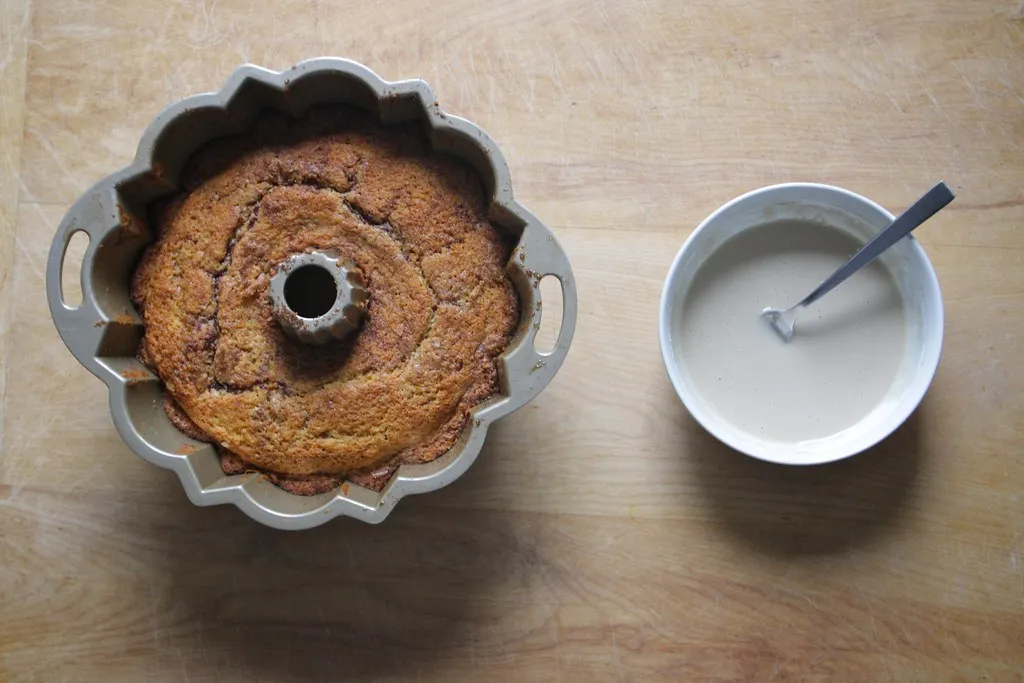 - Vanilla Glaze: Whisk together ½ cup (60 g) powdered sugar, 1–2 tablespoons milk, and ½ teaspoon vanilla extract until smooth. Drizzle over the cooled cake.